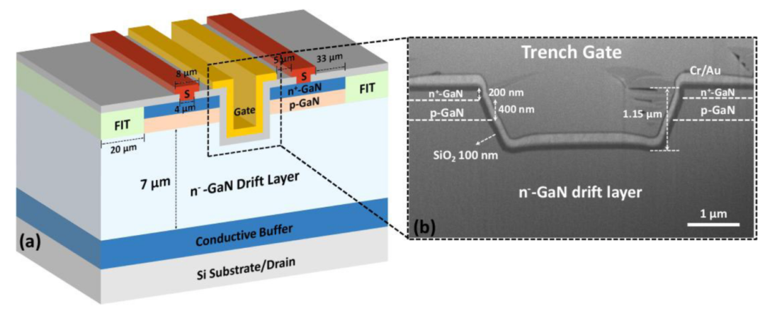 山东大学和华为前阵子发布了一个论文,宣布在中国使用氟(F)离子注入终端(FIT)在全垂直氮化镓(GaN)硅基硅(Si)沟槽金属氧化物半导体场效应晶体管(MOSFET)中实现了1200V击穿性能。
