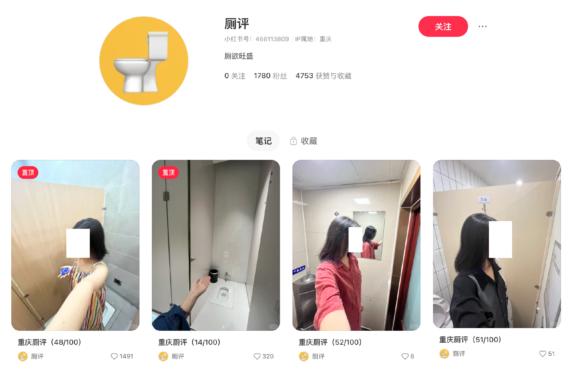 为了最大程度避免这类悲剧发生,从去年年底起,一波探厕博主开始大规模涌现在社交媒体上。如今,测评模式已经发展成熟,并成了生活必备攻略的一部分。其内容之丰富,就像是《孤独星球》之于背包客。