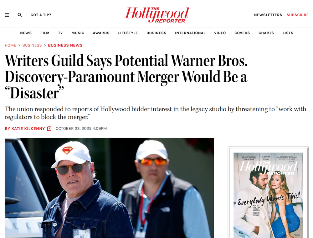 “失去华纳作为一家独立制片厂将是令人心碎的。已经有太多娱乐行业各个领域的优秀人才失业,现在我们发现最大、最可靠的制片厂之一可能被整合?”