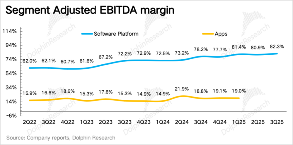 3. 盈利到极致,后续提升难度加大:虽然上季度剥离完1P游戏应用业务之后,经营利润率达到76%、调整后EBITDA达到81%已经非常高了。