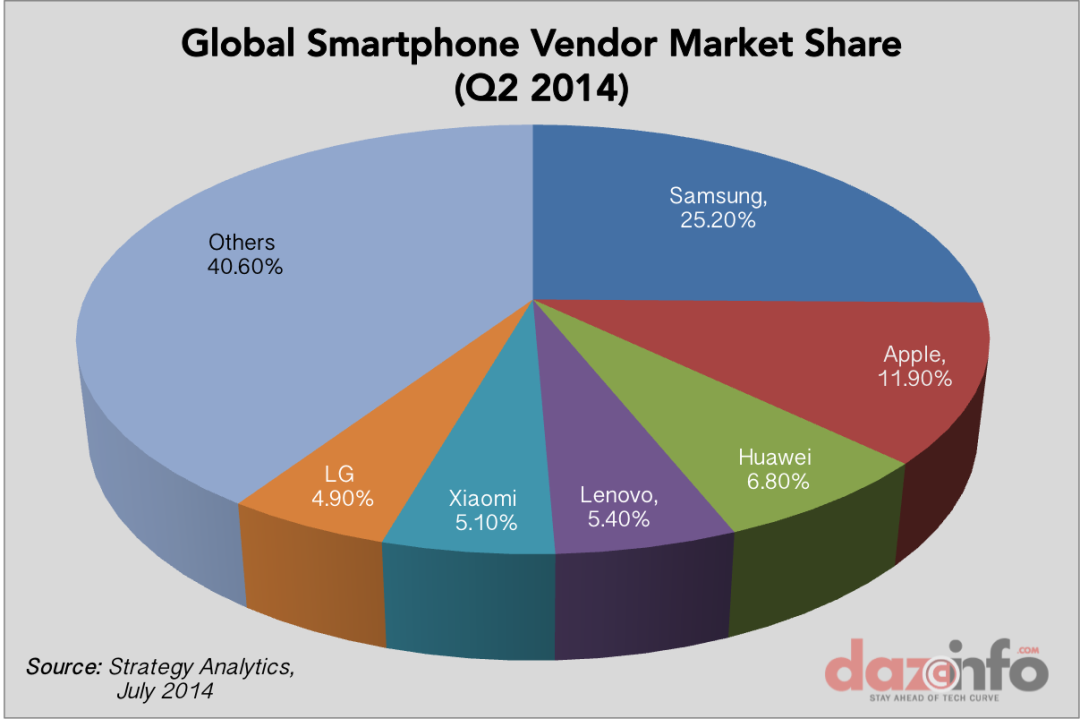 只不过,这4000万台Xperia不是索移走向巅峰是开始,而是出道即巅峰。更何况,放眼当时的全球智能手机市场,这也是个微不足道的数字——2014年,索尼的全球手机市场占比仅为2%,别说跟当时正在全球市场攻城略地的小米华为比,这个销量连当时LG手机的一半都达不到。