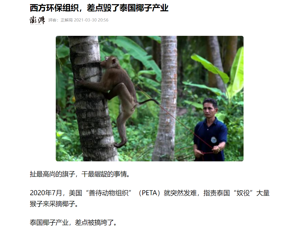 美国曾经以奴役猴子采椰子为理由制裁过泰国椰子产业;
