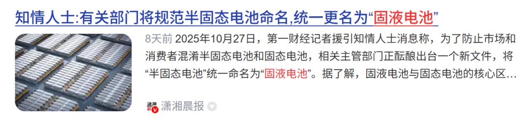 不过好消息是,最近有消息曝出,相关主管部门正在考虑进一步规范固态电池话术,酝酿出台一份文件,将“半固态电池”统一命名为“固液电池”。