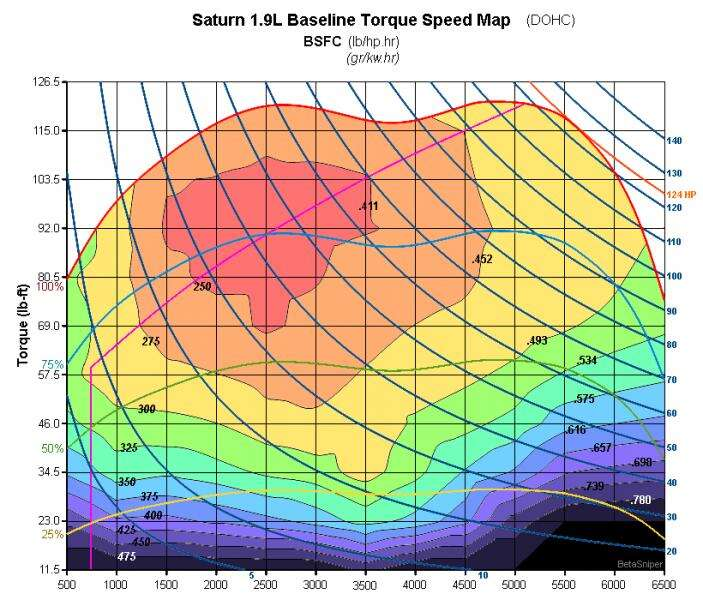这时候就得祭出这张大伙都非常熟悉的发动机万有特性图了。