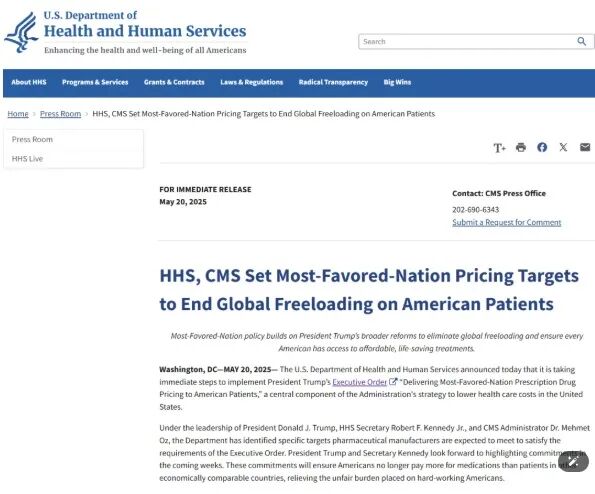 3. HHS 2025年5月20日《最惠国定价政策实施细则》;