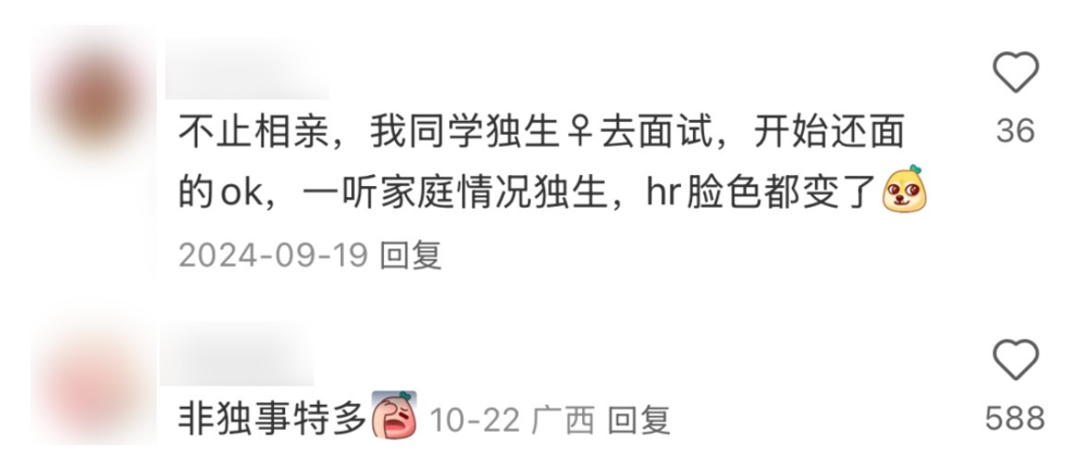 再反观独生子女,他们也有自己的无力反驳——“无论你是硕博连读的高材生,还是来自大富大贵之家,都能被同一理由婉拒:娇气,没情商。”