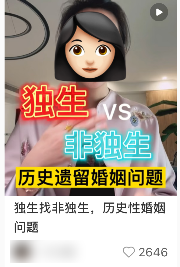 但最近,相亲界出现了一种最让年轻人头痛、更控制不了的“新规”——独生子女与非独生子女,不通婚。