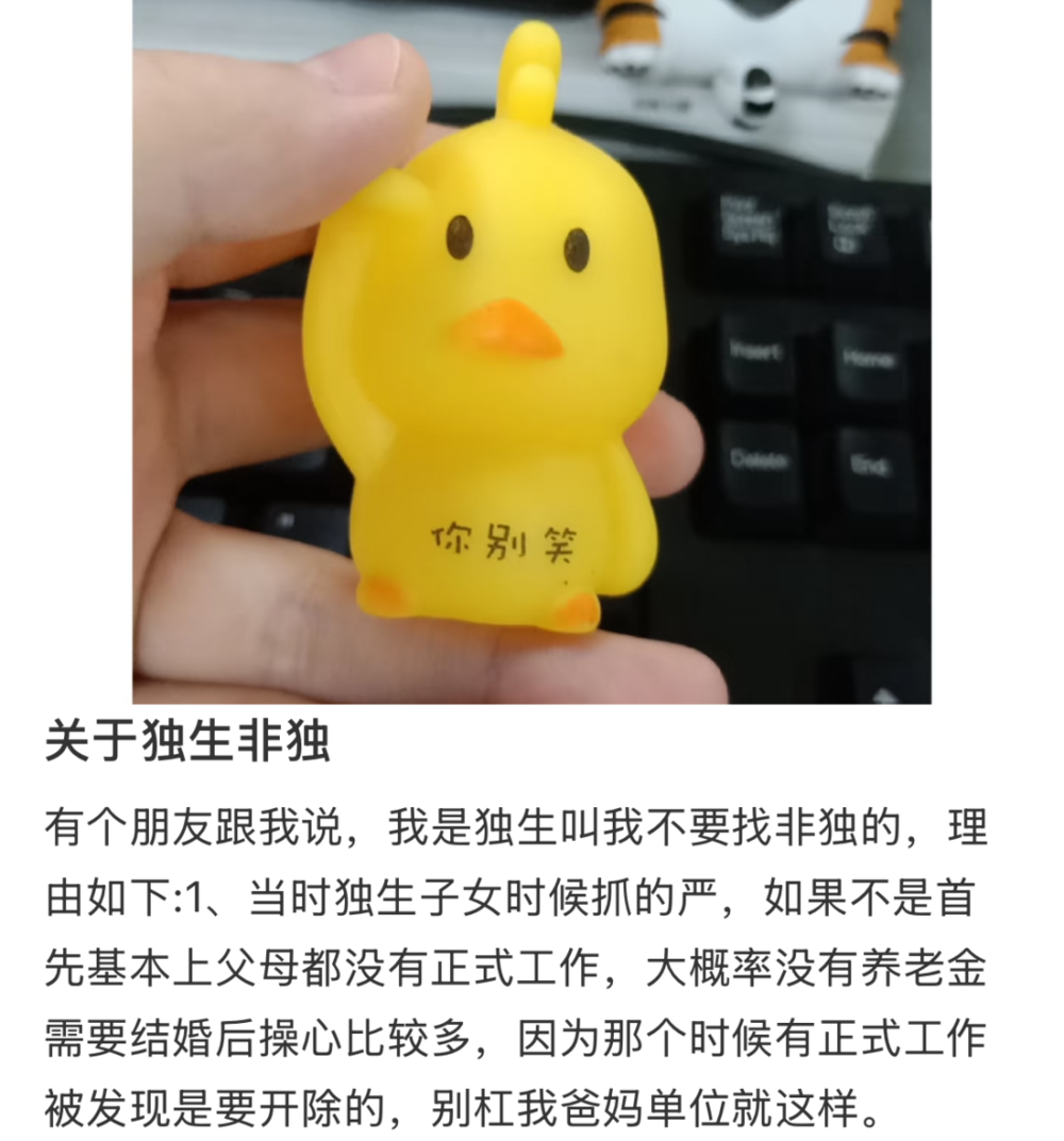 原本,在其他领域,独生子女与非独生子女之间,各自安好,谁也碍不着谁。“别人不会随便打听你到底是独生子女还是非独,就算知道你的身份,也不会多嘴多舌。”