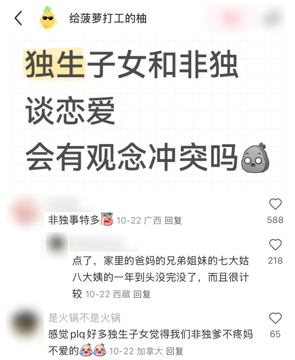 现在,独生与非独们的家庭属性截然不同,不仅从小生活方式天差地别,更别提长大后的为人处事,也常常难以对齐颗粒度。