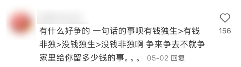“如今独生、非独生们吵得不可开交,就像是曾经相亲角里的房产、学历纷争一样,各取所需而已。你越是缺什么,就越被什么吸引。”