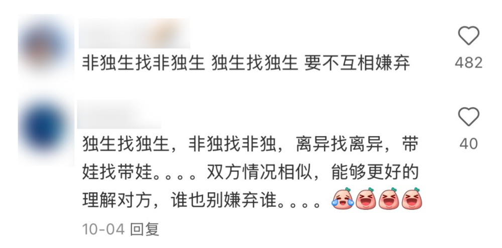 于是,年轻人开始意识到,相亲市场里讨论是否独生这件事,就像是玄而又玄的星座、八字、mbti……“你可以不信邪,认为这没有科学依据,但也能真情实感地自我带入,一人一个理解罢了。”