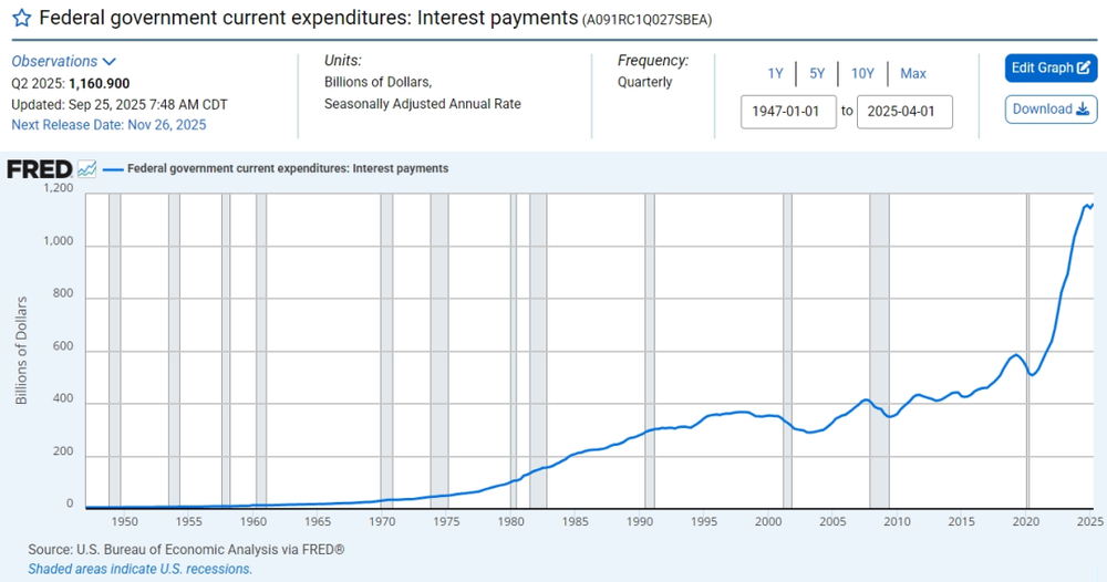 笔者2019年就写了系列文章研究美债危机,那时美债虽然已有不好的发展势头,但余额不过21万亿美元、年利息3000亿美元出头,而如今最新数字已是38万亿美元。2025年美债利息预计1.3万亿美元,大幅超过军费开支,指数增长正冲向2万亿美元,直追第一大的社保开支,这意味着什么,稍有脑子的人都知道。美债长期已不可信,美债日常的“借新还旧”操作转向短债迅速滚动,市场认为美债短期风险还不至于爆发,以此维持局面。全球多国已对美债十分警惕,海外持有美债占比从三分之一跌向五分之一。