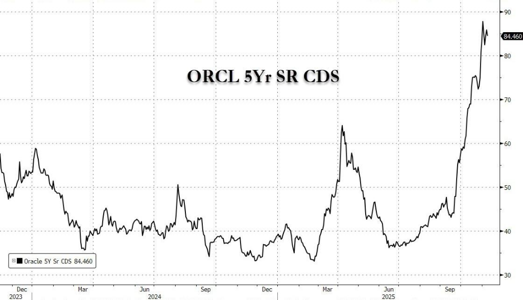 市场的忧虑情绪已反映在金融衍生品的价格上。近期,甲骨文的信用违约互换(CDS)价格出现飙升,已升至2023年10月以来最高水平,达到了84.46个基点。这表明投资者愿意支付更高的成本来对冲其潜在的违约风险。