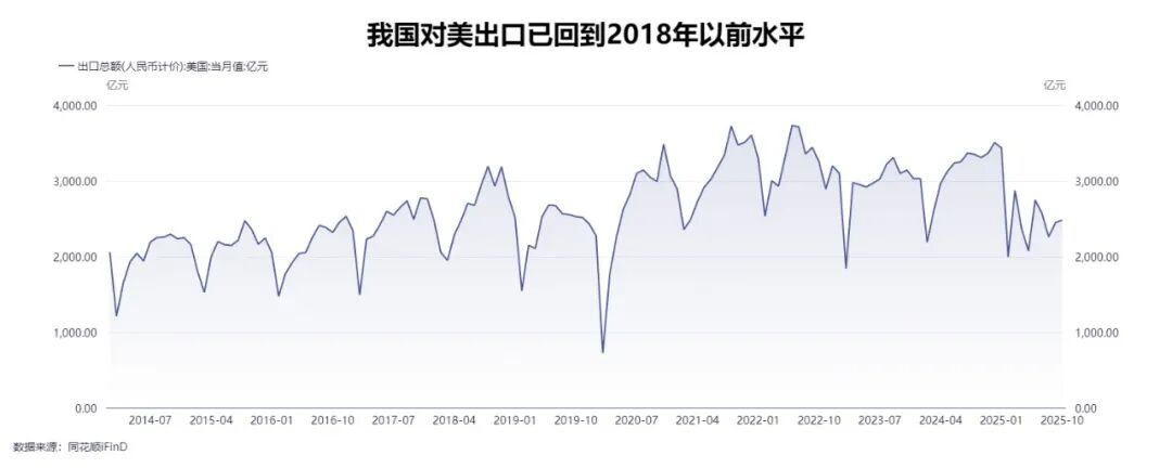 由此可见,从出口规模来看,我国对美出口水平已经回到2018年以前的水平。