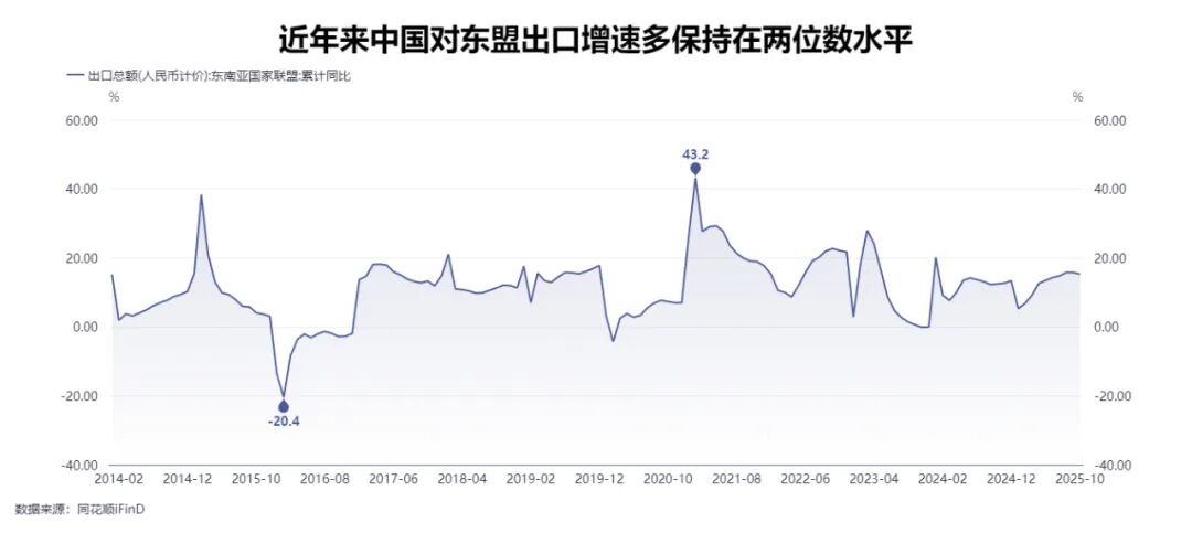 华泰证券研报显示,今年以来,中国对东南亚地区出口显著走强,体现了出口商在强化自身优势、对冲高关税影响等方面的应对更为有效。例如,中国对美国出口下降的同时,对东南亚国家出口明显上升,形成“镜像”,而东南亚国家对美国出口明显上升。