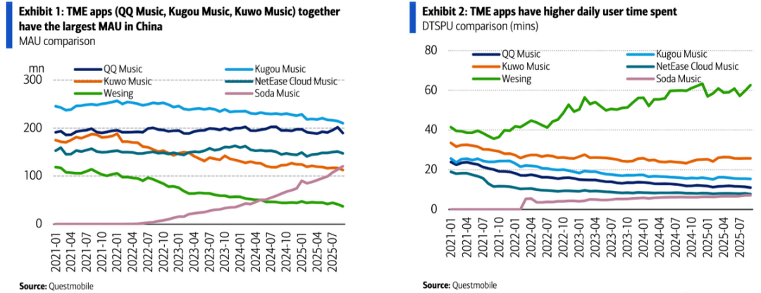 2. 竞争格局边际变化:担忧开始增加。在年初做4Q24点评中,我们就提出今年音乐流媒体可能主要关注点在竞争的变化上,这是因为——根据QM数据,汽水音乐在年初已经达到9000万,这是3年时间完成的用户积累。