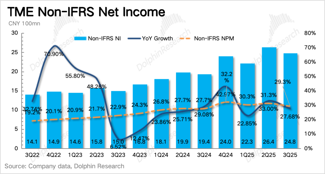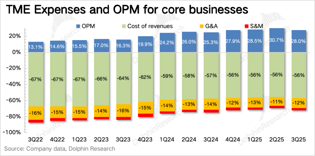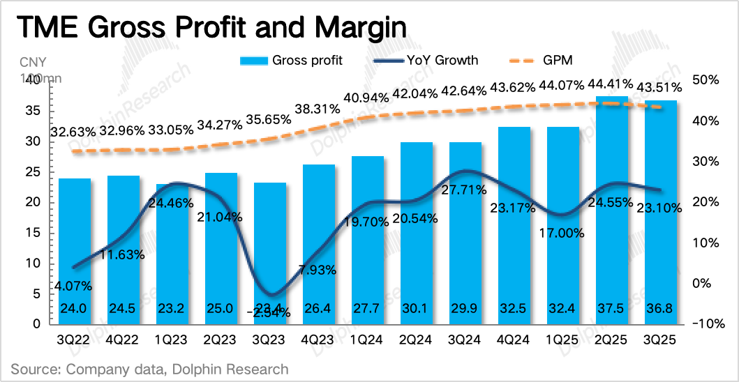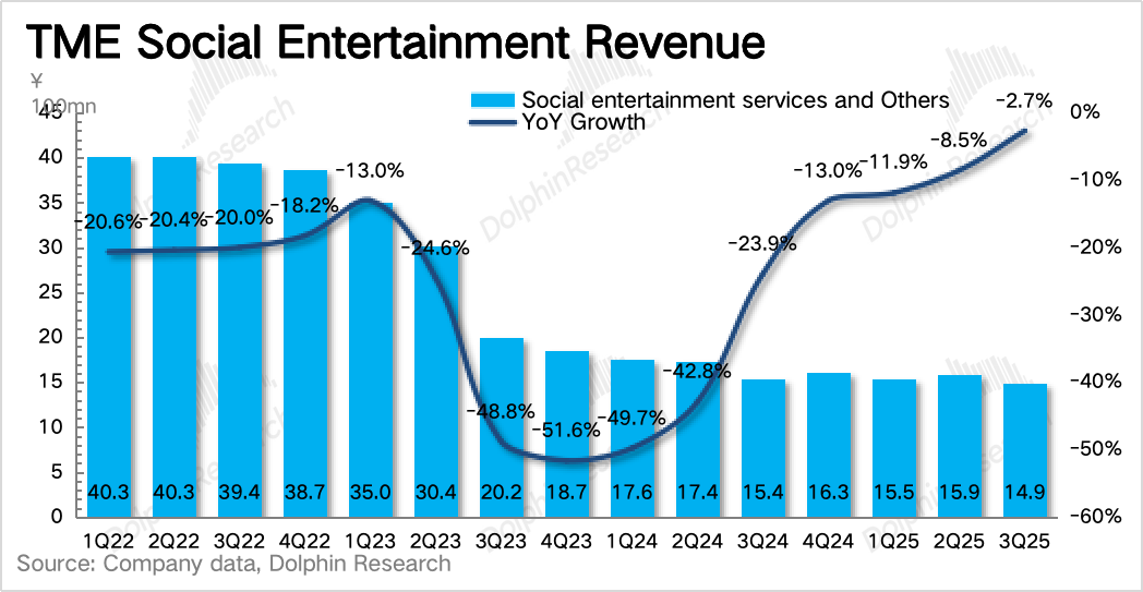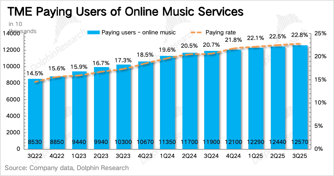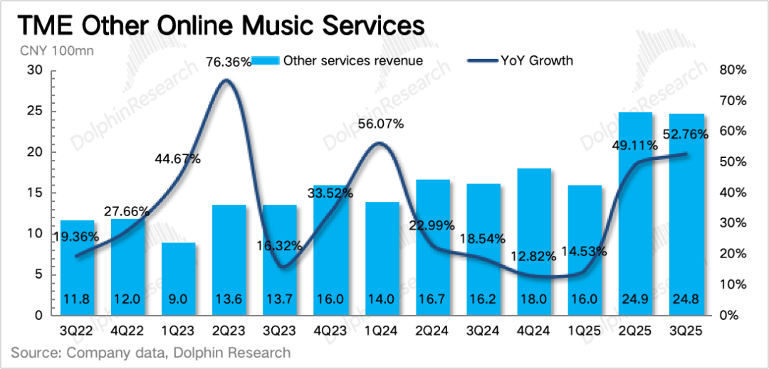 三季度其他音乐服务超预期加速增长53%,达到25亿,已经占到了总营收的30%。