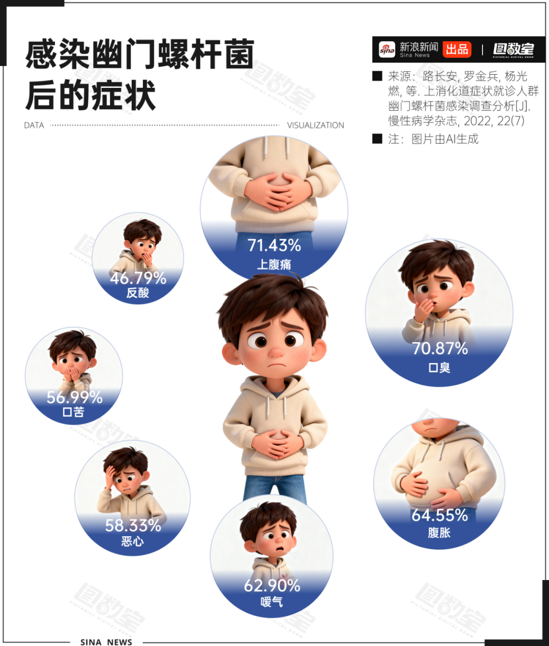 在确诊患者中,71.43%出现上腹痛,70.87%存在口臭,64.55%伴有腹胀,其余还包括嗳气、恶心、口苦、反酸等多种消化道症状,持续困扰患者健康。