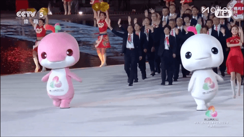 11月9日,第十五届全国运动会在广州开幕,吉祥物“大湾鸡”跟随运动队出场,成了全场最忙的角色。