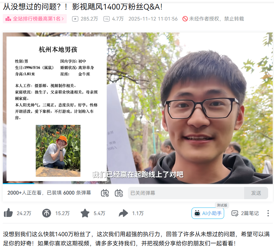 因为这条视频不是什么专门的实验企划,只是一个回馈粉丝的福利活动。