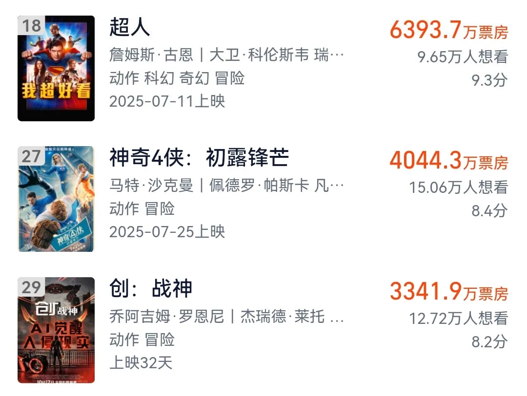 而带有“重启”性质的作品(如《超人》《神奇4侠:初露锋芒》《创:战神》等)更是会失去原有的观众粘性,无论IP多有名,在内地均难以取得好成绩。
