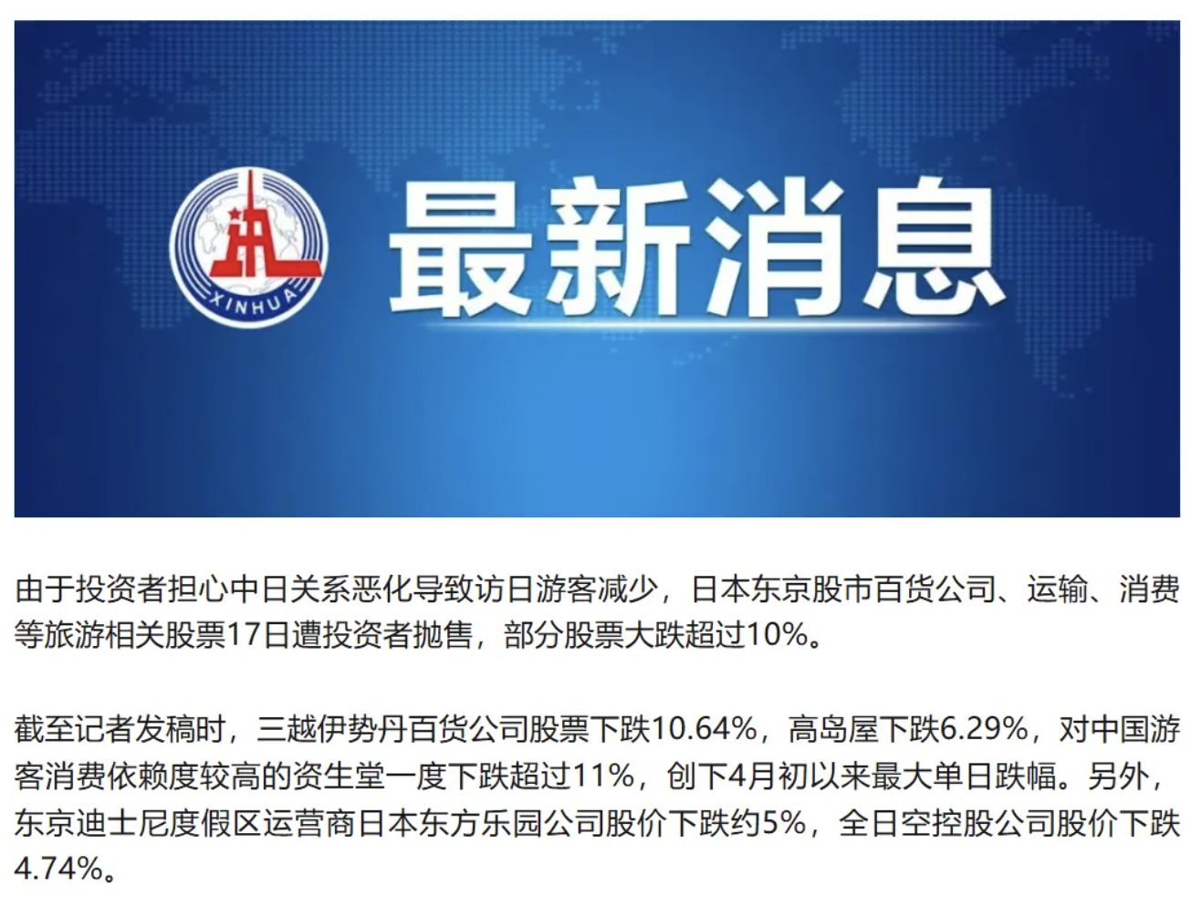 所以,再回过头来看,中国公民暂缓日本旅游,导致日本旅游和消费类股受重挫,这件事“抽象”吗?