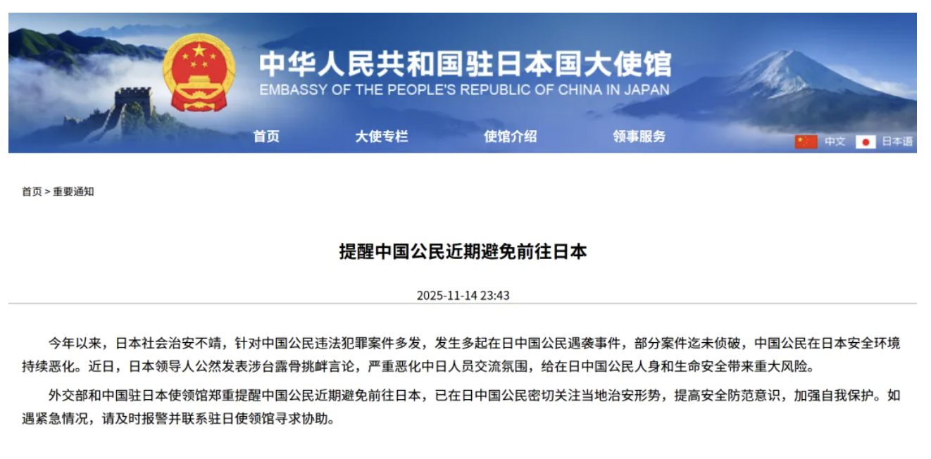 旅行警告发布后,东京成田机场中国航线预订量单日下滑65%。京都、奈良等地依赖中国游客的旅馆空房率飙升至70%。