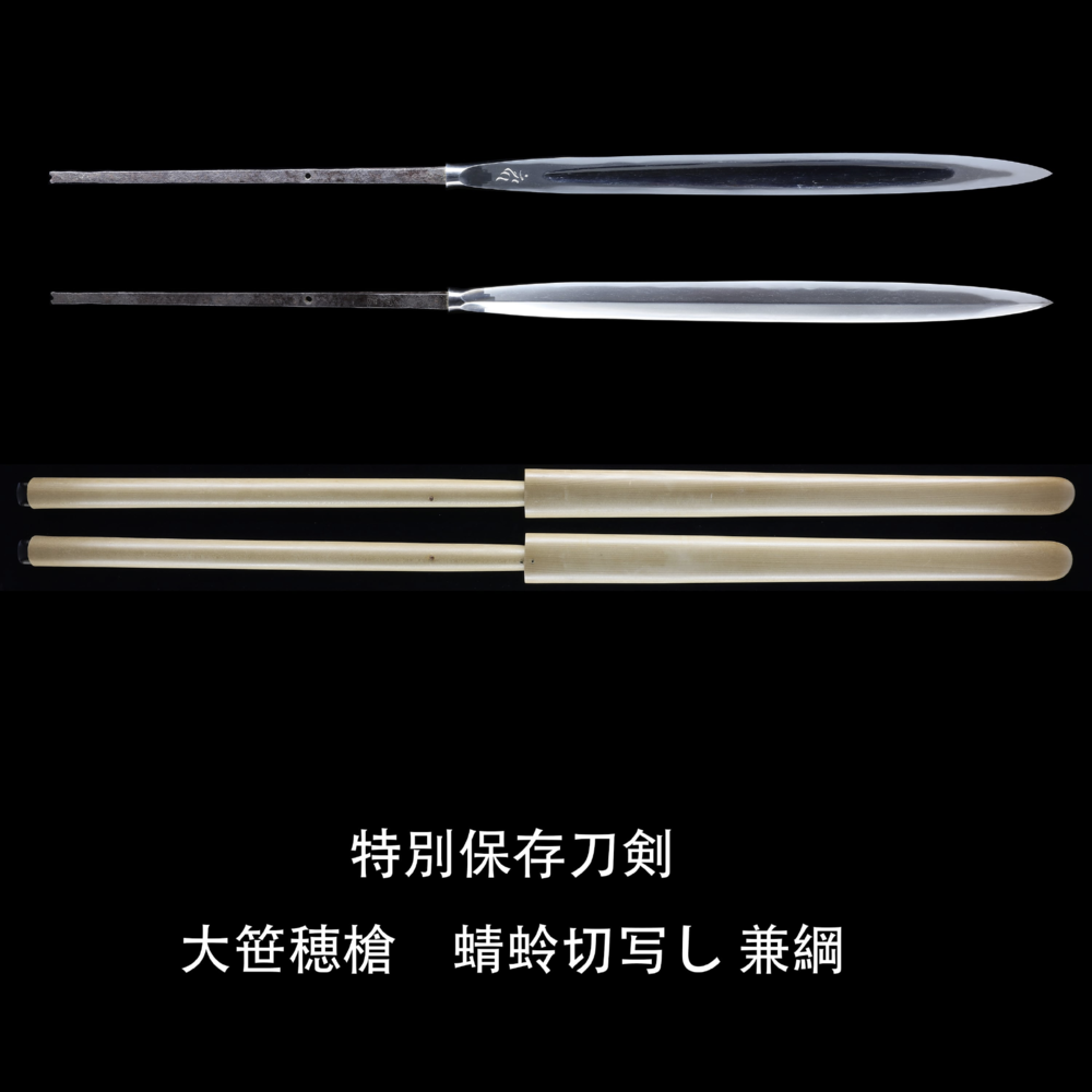 蜻蜓切是德川家康猛将本多忠胜的武器,这个名字的缘由来自一个传说:据说一只蜻蜓刚碰到本多忠胜的枪锋刃口,就被切成两段,因而得名。写字一般指模仿制作,兼纲则是活跃于室町时代中期(约500年前)的刀工