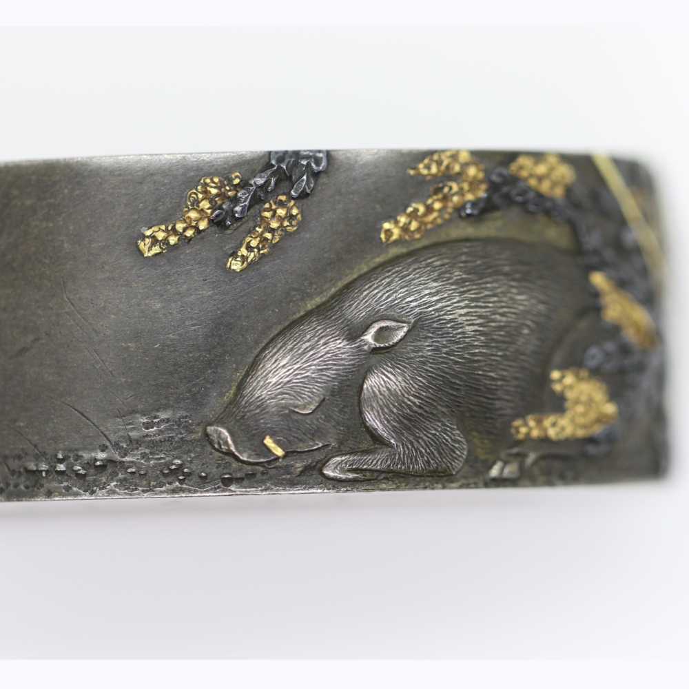 縁頭 月下眠猪 染谷知信