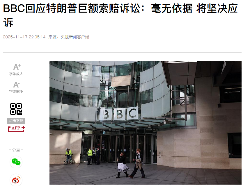 BBC一方面承认自己编辑失误,另一方面坚决拒绝索赔。毕竟10亿美元实在是太多了。隔壁美国哥伦比亚广播公司(CBS)因为《60分钟》节目的问题也就赔偿了特朗普几千万美元。