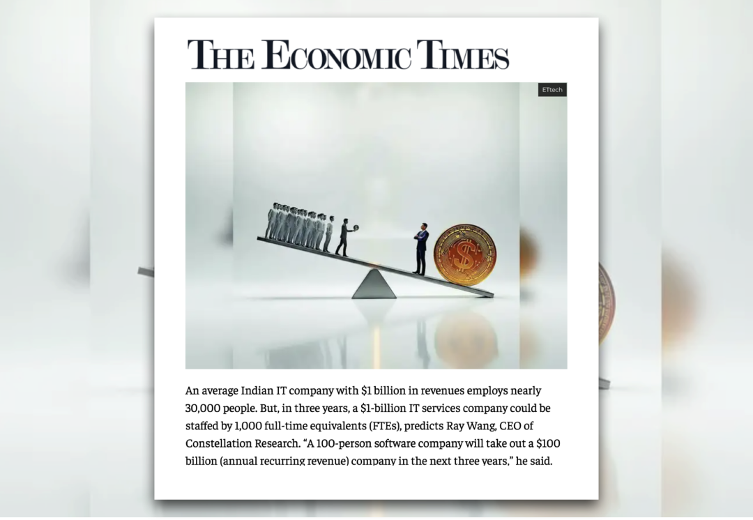 咨询公司预测,未来一家年收入10亿美元的AI服务公司可能仅需1000名员工,而同样规模的传统IT公司则需要近3万名员工。