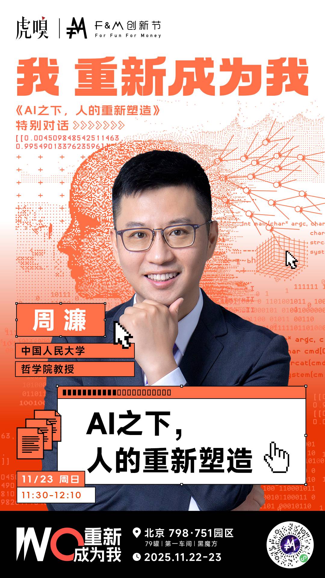 11月22-23日,虎嗅2025F&M创新节即将启幕,在100+行业先锋外,我们邀请来数位探寻AI时代下生命价值的智者,他们不是VC大佬,也不是纯技术派,而是深耕哲学、历史、教育领域的学者与思考者。