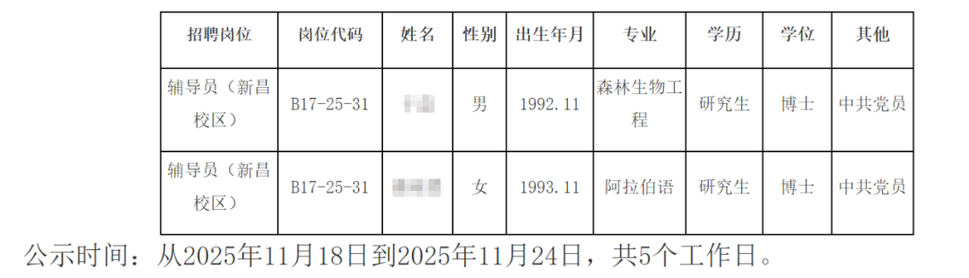 近日,浙江某职业技术学院公示了三批拟聘用人员。其中,辅导员岗位拟聘用人员皆为博士。