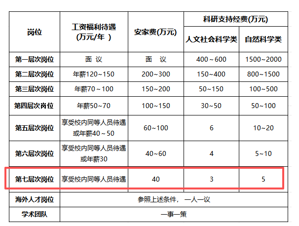 抛开辅导员全部入编的优势,博士辅导员还可享受地方人才补贴,福利丰厚。比如某师范大学的专职辅导员,“入校4年考核合格后,在符合引才标准前提下,可申请转至教学岗位,按照第七层次人才标准享受安家费。”根据该校2025年度人才招聘公告,第七层次岗位享受40万元安家费,人文社会科学类享受3万元科研支持经费,自然科学类享受5万元科研支持经费。