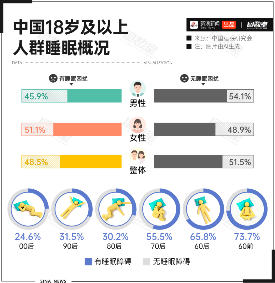 根据《2025年中国睡眠健康调查报告》显示,中国18岁及以上人群睡眠困扰率约为48.5%,超3亿人存在睡眠障碍,其中约1.5亿人需积极干预。