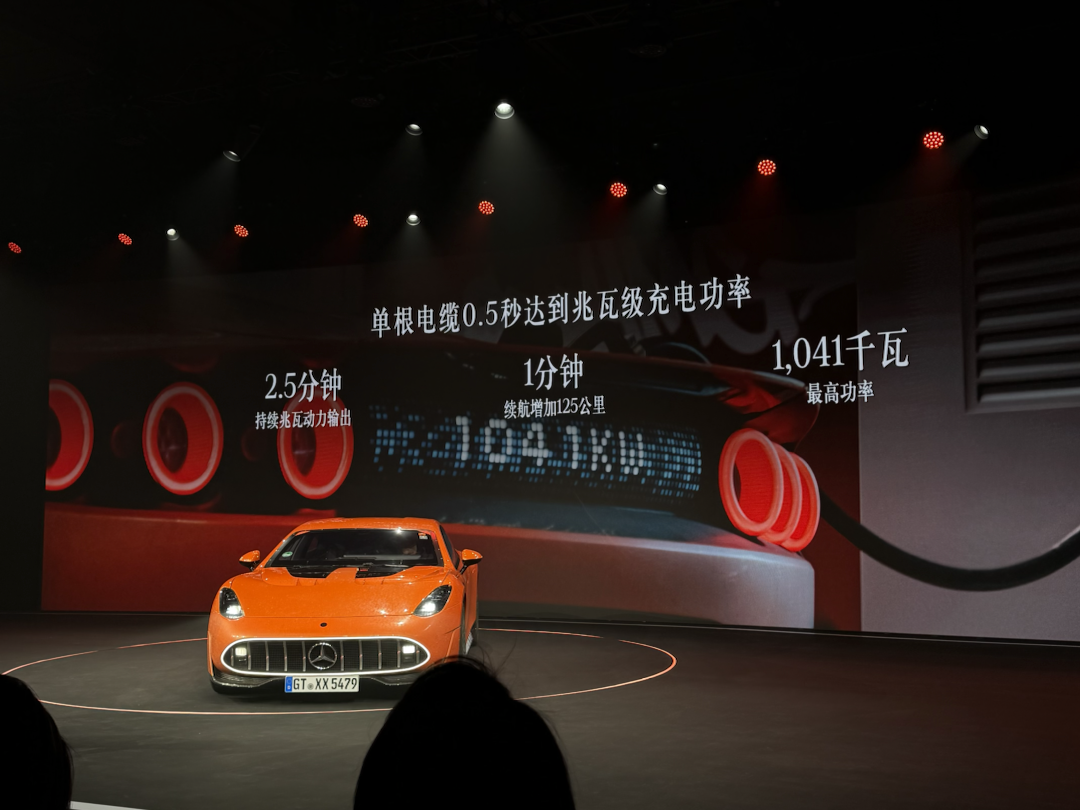 在24小时行驶5479公里的背后,AMG GT XX概念车的超充能力也不容小视。它能够实现超850千瓦的平均充电功率,充电约5分钟续航可增加400公里(WLTP工况),让充电像加油般便捷;在充电测试中,其凭借单根电缆实现兆瓦(1000千瓦)充电功率,峰值充电功率达1041千瓦,并可维持兆瓦级充电功率约2.5分钟。