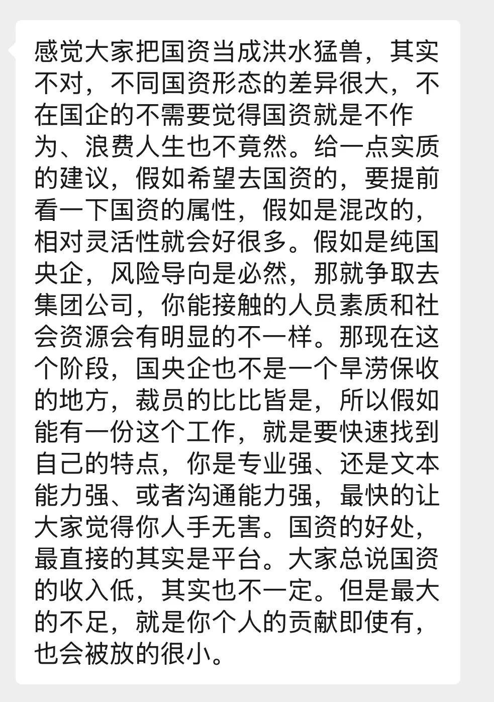 “看到群里关于国资的讨论,感觉有点片面,我自己的感觉: