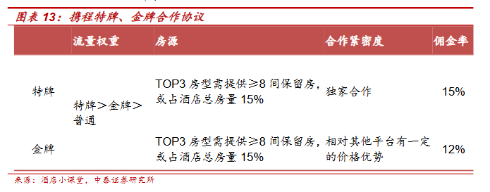 中泰证券研报数据显示,目前携程住宿预订业务综合佣金率在8%到10%左右,对于流量倾斜的特牌、金牌商家,佣金率高达12%到15%。