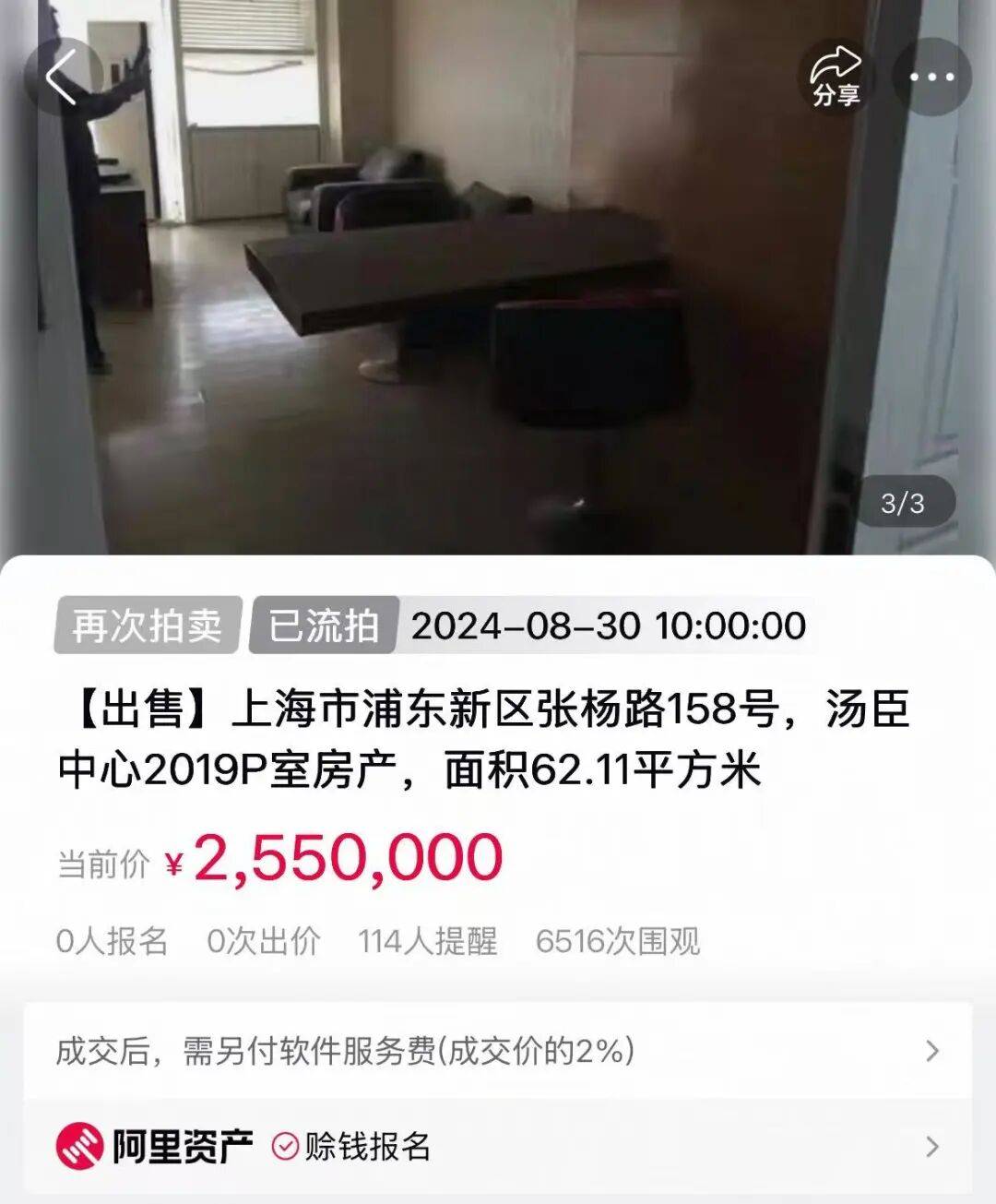 上海陆家嘴一间六十多平方米的住宅,出价255万元,数次遭遇流拍;