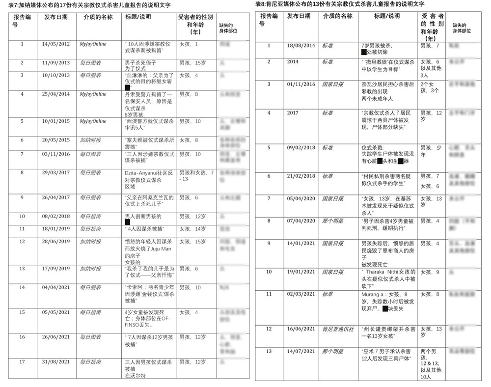 值得注意的是,由于肯尼亚与加纳两国没有对仪式杀人进行专项数据搜集,Owusu的研究数据主要依赖加纳与肯尼亚的8家官方媒体报道,考虑到仪式谋杀认定在非洲执法中处境含混,这些数字大概率是保守估计,真实案件数量可能更高。