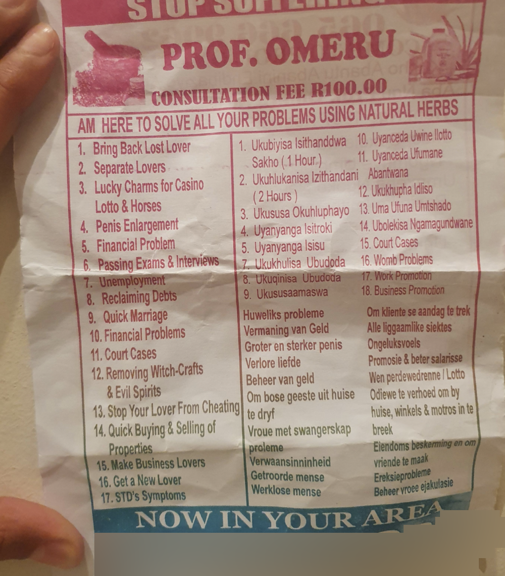 非洲有一种传统药酒叫作muti,正宗的都跟中药差不多,拿草药泡水治病。但一些邪修的巫医则相信拿人体器官入药更能增强法力。尤其是保持童贞的儿童最被犯罪分子关注,一来是因为他们没有反抗能力,二来是因为他们相信年轻的血肉至真至纯,能让药物更加纯净。