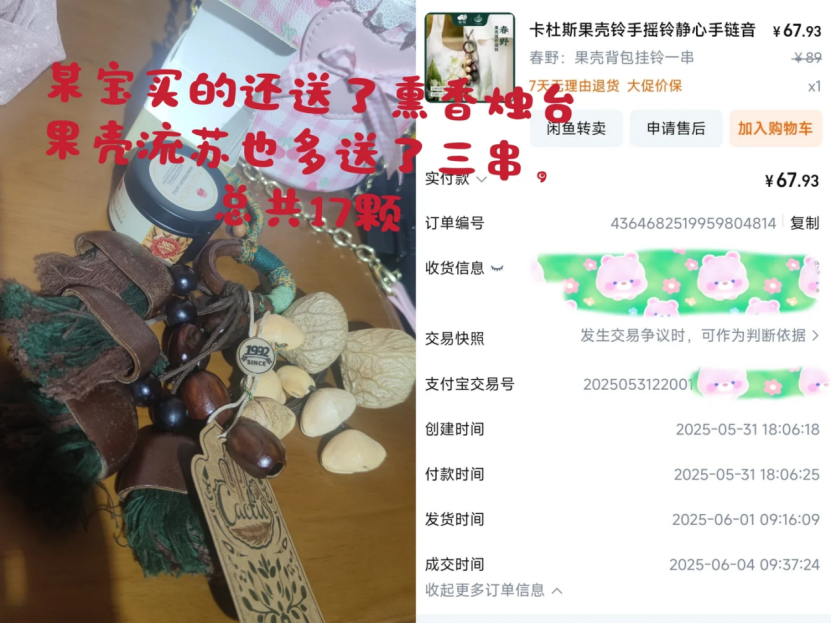 小金网购的风铃,价格只需要线下市集同款的一半。而且,电商平台上还有售价更低的类似产品。(图/社交媒体截图)