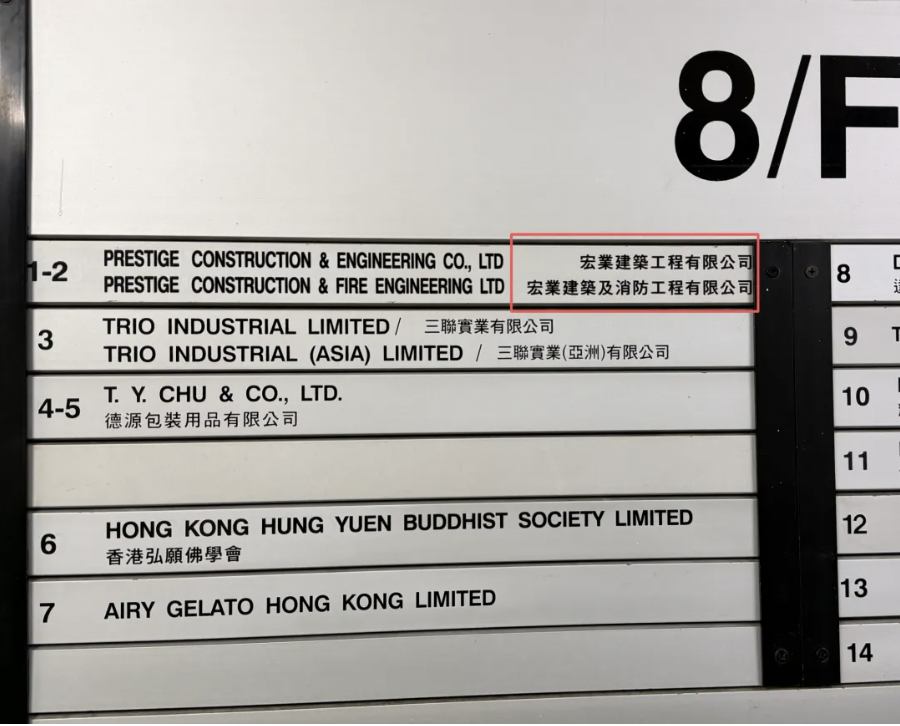 2023年,鸿毅公司作为顾问,对多家工程承建商进行过面试评估,评估表显示,宏业建筑在上世纪90年代初成立,有消防牌照(自己公司),曾参与过香港北角富豪阁、半山宁养堂、屯门康丽花园等多个小区或大楼的整体性维修。
