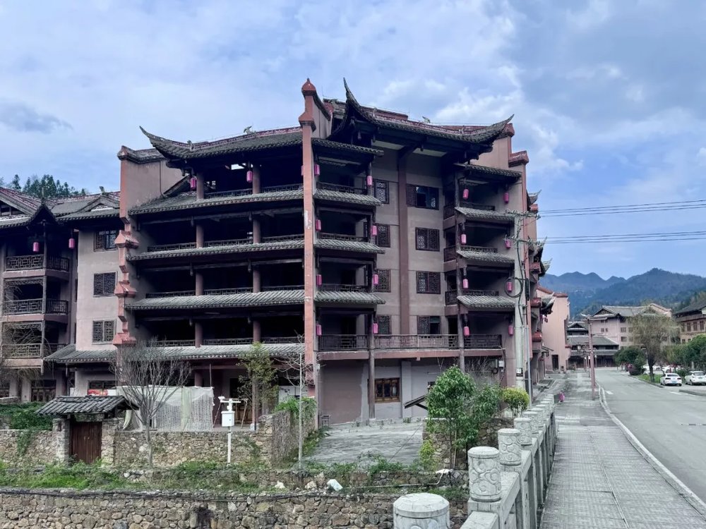 很多人知道这个地方,是因为这里的地标。一栋高约九十九米、占地超过八个足球场的巨型建筑,坐落在距离县城二十多公里的影山镇净心谷景区,如今名为“紫林山豪利维拉度假酒店”。