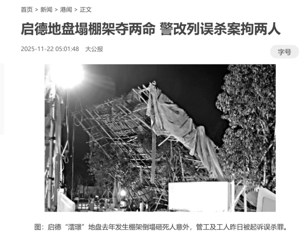 11月26日,香港发生了一起罕见的住宅区严重火灾,截至目前已证实的遇难者已有128人,此外,香港警方以涉嫌误杀罪拘捕负责维修大厦的工程公司三名负责人。
