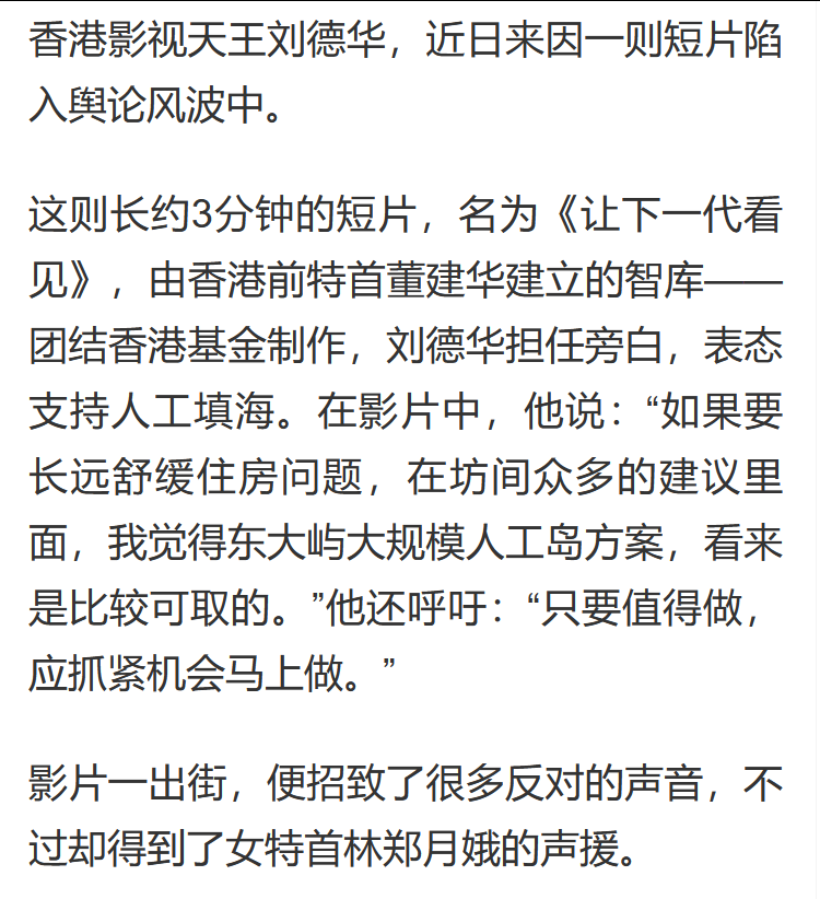 曾贡献四分之一建设用地的填海工程,自2005年起因环保阻力几近停滞,就连刘德华代言的“明日大屿”填海造地计划也举步维艰。