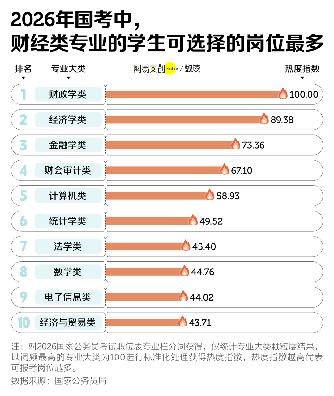 如果考生读的是财经类专业,那TA会有很多选择,因为可报考岗位最多的Top3专业大类都与财经沾边。