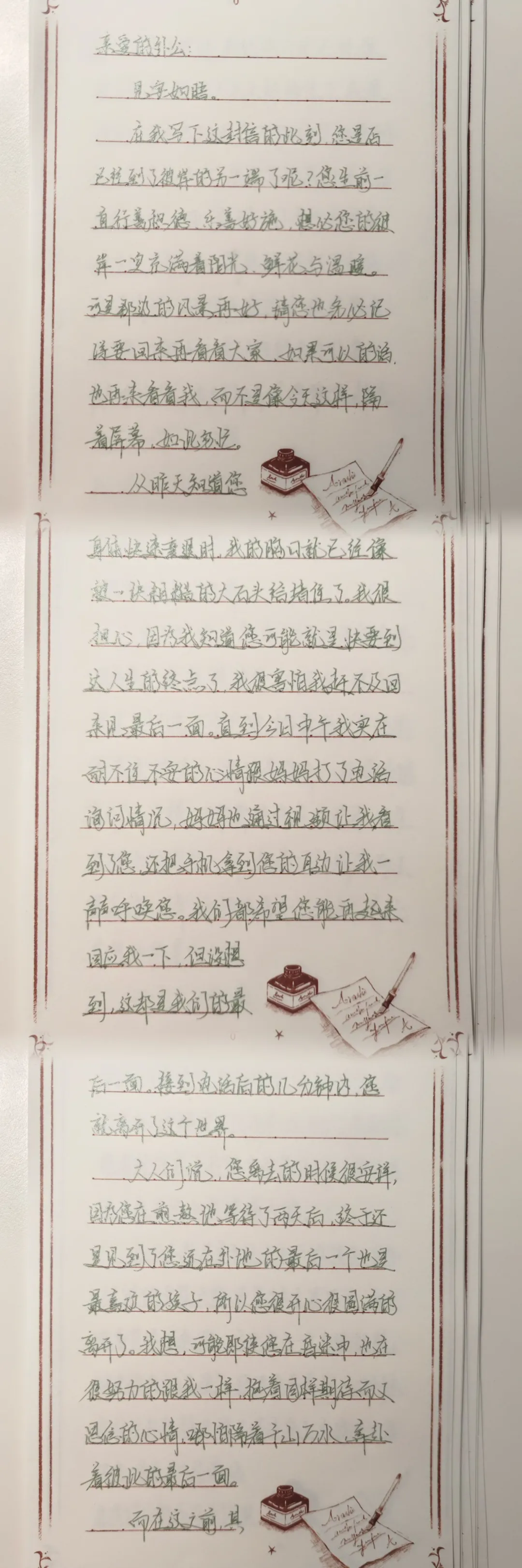 ▷在我们之前的读者征集中,@钰写给已经逝世的外公的信