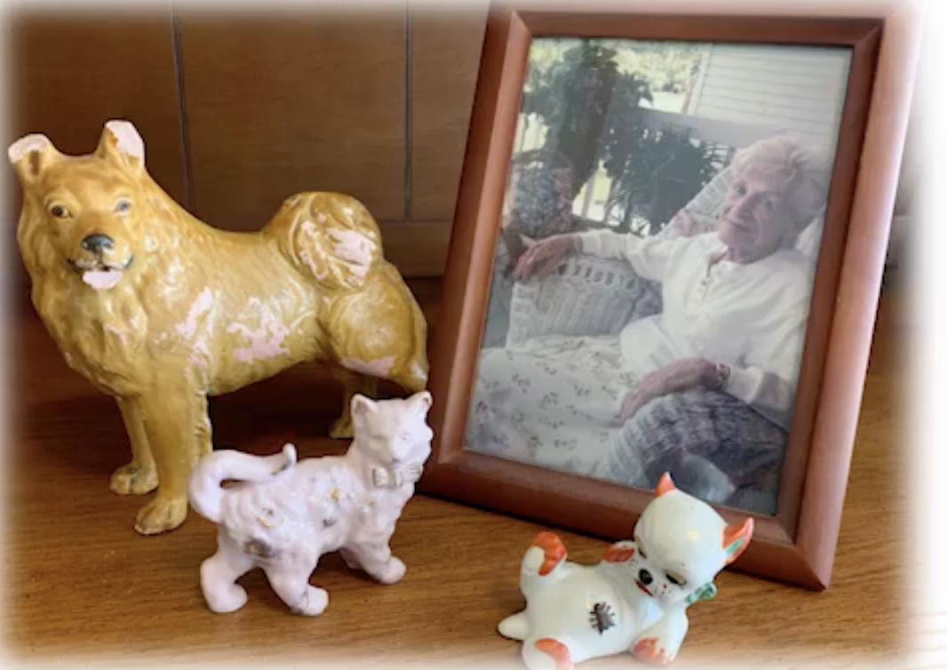 可以是 ta 留下的重要财产,纪念品,也可以是能象征 ta 的物品。比如一位来访者的母亲因为疾病去世,她留下了一张带相框的照片,还有一些瓷器小动物。因为她的母亲在一个农场长大,这些小瓷器动物是母亲在年轻时创造和绘制的,诉说了很多关于母亲的生活故事。