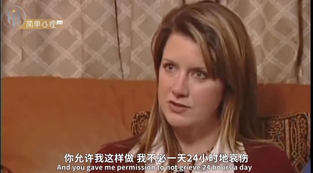 在咨询师的帮助下,她逐渐学会了“允许自己不必 24 小时都哀伤”,在后续的治疗访谈中,她这样说道: